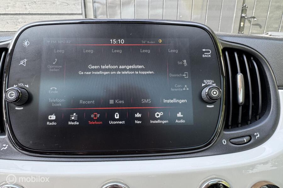 Wat een mooie auto deze Fiat 500 1.2 Lounge uitgevoerd in de kleur BIANCO GARA . De auto is voorzien van Parkeersensoren , Panoramadak, Navigatie, Apple Carplay Zelf blijf je als bestuurder fris dankzij de automatische airco (electronic climate control
