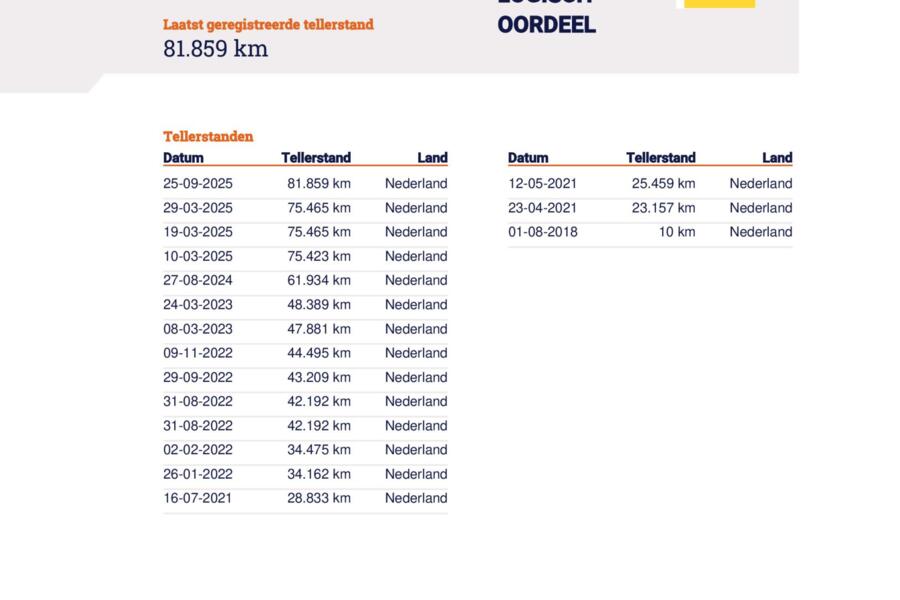 Het NAP-logo staat alleen bij voertuigen die gecheckt zijn bij de RDW en waarbij de RDW een logisch oordeel heeft afgegeven ten aanzien van de reeks kilometerstanden.